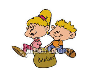 It was one particular game the kids had to partner up and get to the finish line with one of each of our legs in a sack together with our partners. My partner was my cousin.