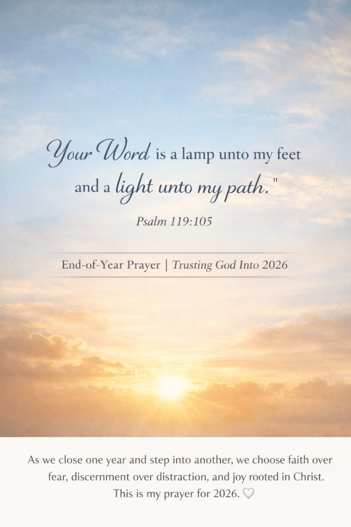 Thank You for Your unfailing love and Your mercies throughout each day of this year. It was a year of uncertainty and hardship—one in which we truly understood that without Your grace, we could not have made it through. Truly, Your Word is a lamp unto our feet and a light unto our path, and we ask that You continue to illuminate our journeys in 2026.