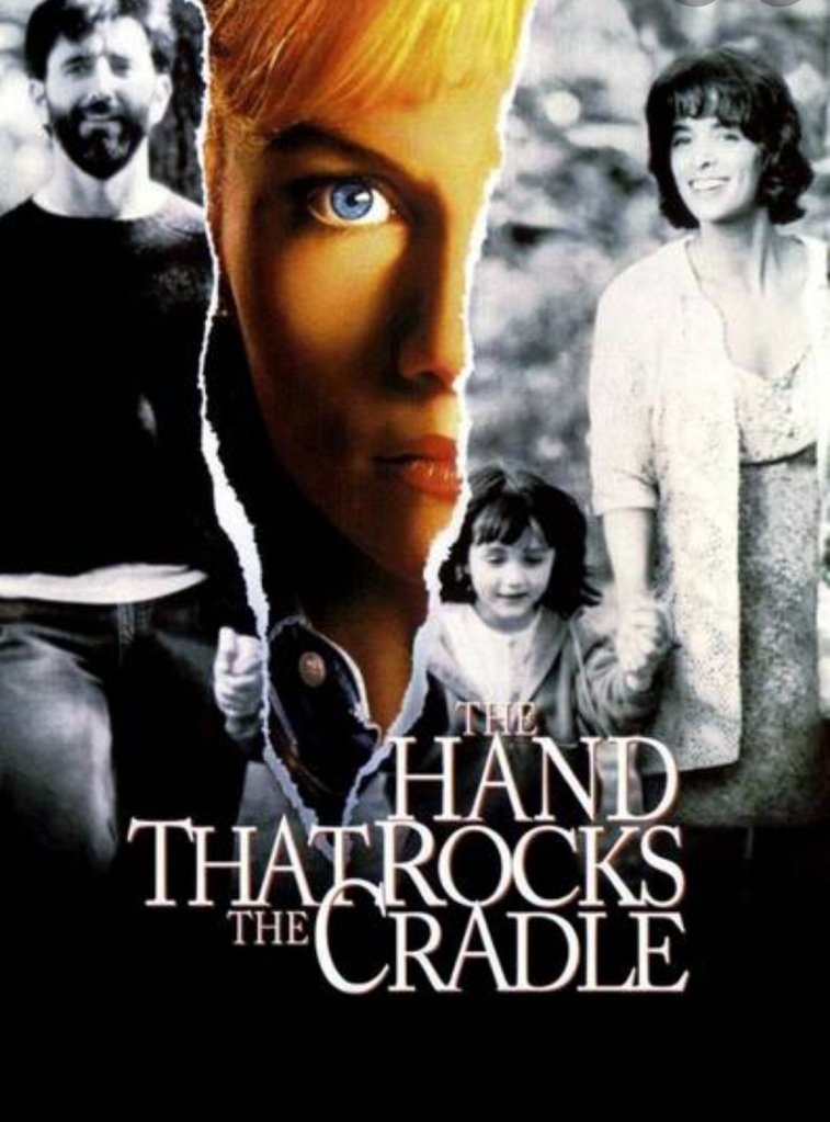 I was watching The Hand That Rocks The Cradle, where a pregnant mom gets molested by her doctor. She comes forward to expose him, he takes his life, and his widow realizes not only is his life over but hers is collapsing also. The widow goes into labor prematurely, and the baby doesn’t survive. She is in the hospital recovering after such loss of her child, and I believe she also had an emergency hysterectomy done. She sees the victim of her husband on tv, and this is where the grief and anger surfaces. The evil wheels get to spinning.