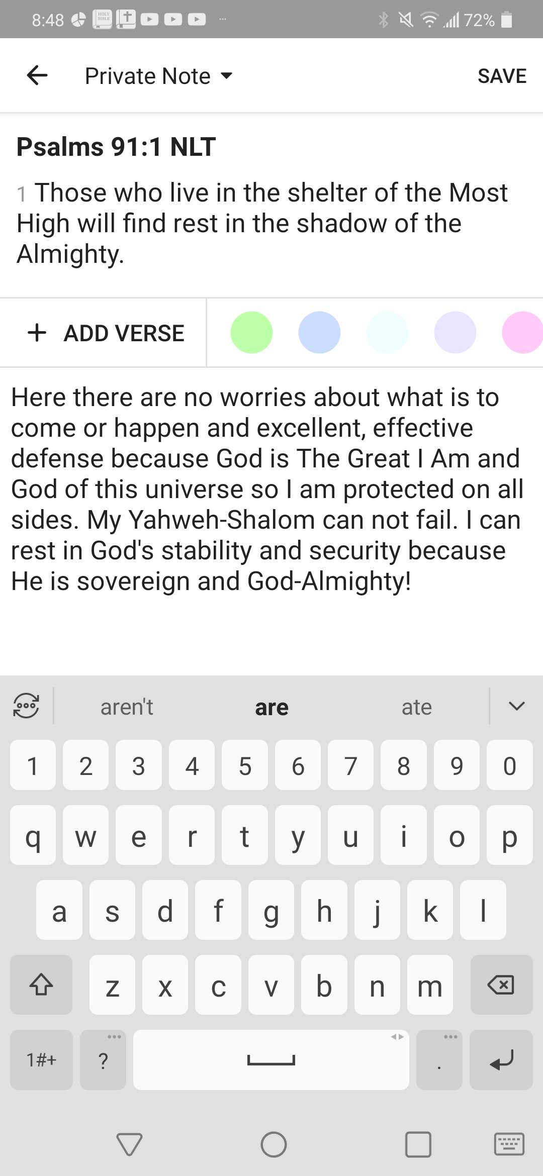I can rest (rest spiritually, mentally, and emotionally, and productively as well as trust God, depend on God, and when I sleep have sweet and restful sleep) and be confident no matter what lies ahead because I habitually dwell in the shelter of the Most High. My Abba Father, my God. He is my refuge and my fortress. My defense and my present help, my Yahweh-Shalom, my provider, my counselor, and my hope. Thank You, God.